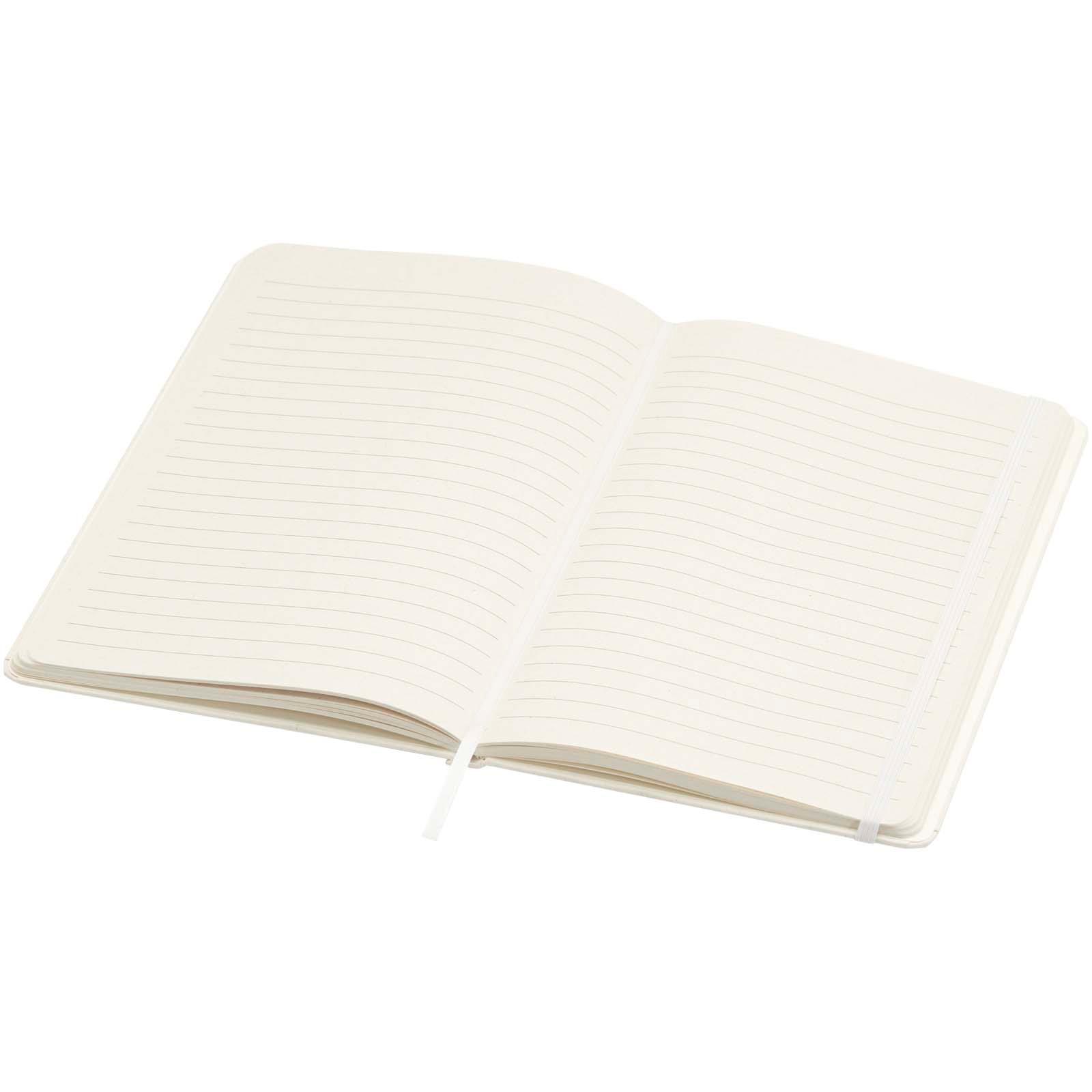 Den inbundna anteckningsboken Bass A5 har 80 linjerade blad av 80 g/m2 papper och är tillverkad av återvunna mjölkkartonger.