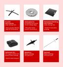 - Kryssfot 50 cm + vattenpåse 12 L – Rekommenderad kombo för asfalt, betong och golv. Tål utomhusbruk vid lättare vind.