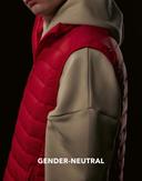 Den isolerande vadderingen av återvunnen polyester ger lätt och behaglig värme. Västen är designad med en vadderad ståkrage för extra skydd mot kyla och en hel innerstormflik för att hålla vinden ute. Certifierad enligt OEKO-TEX® STANDARD 100.