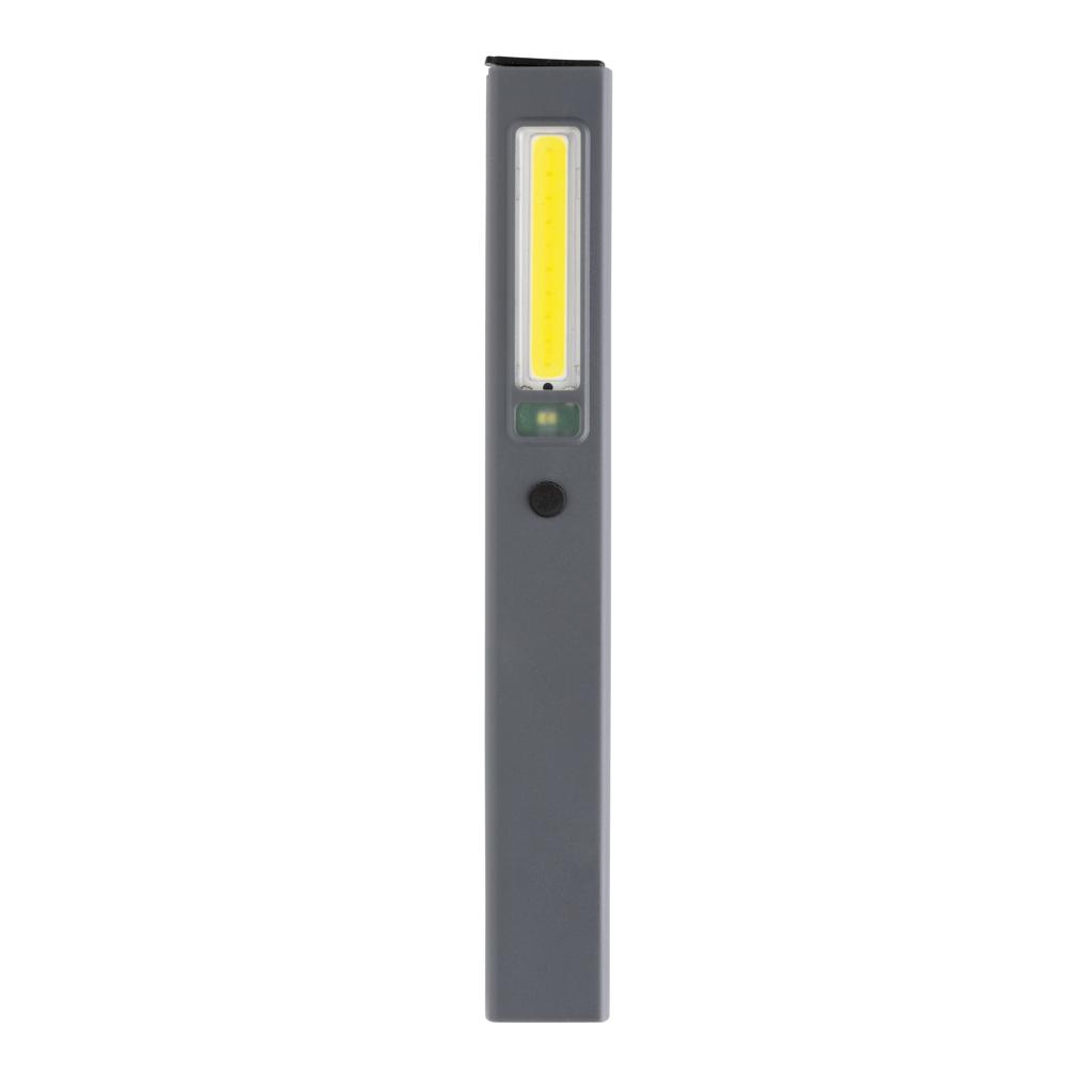 Inspektionslampa i fickformat tillverkad av RCS-certifierad återvunnen ABS-plast. Totalt återvunnet innehåll: 33% baserat på total produktvikt. RCS-certifieringen säkerställer en helt certifierad leveranskedja för det återvunna materialet. Arbetslampan använder ett uppladdningsbart A-klass 520 mah litiumbatteri så du behöver inte byta batterier. Ladda via ditt USB-uttag. Arbetslampan levereras med 220 lumen COB-lampa och 80 lumen LED-lampa. Med 3 lägen: LED, COB och COB röd. Med klämma för att fästa i bälte eller ficka och magnet. Med type C-port för laddning. Drifttid på en laddning: 3 timmar.