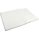 A4-skissboken Moleskine är kartongbunden med ett rundat omslag och har syrafritt papper av högsta kvalitet. Anteckningsboken har ett bokmärke, en elastisk förslutning och en expanderbar innerficka som innehåller historien om Moleskine.