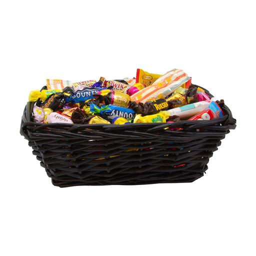 Klassisk påskkorg fylld med 1,5 kg inslaget varumärkesgodis från kända märken som Dumle, Geisha, Mars, Twix, Snickers, Plopp, Fazer Blå, Riesen m.fl.. Korgen är vackert inslagen i cellofan och dekorerad med en rosett – en stilfull och uppskattad gåva till anställda, medarbetare eller kunder.