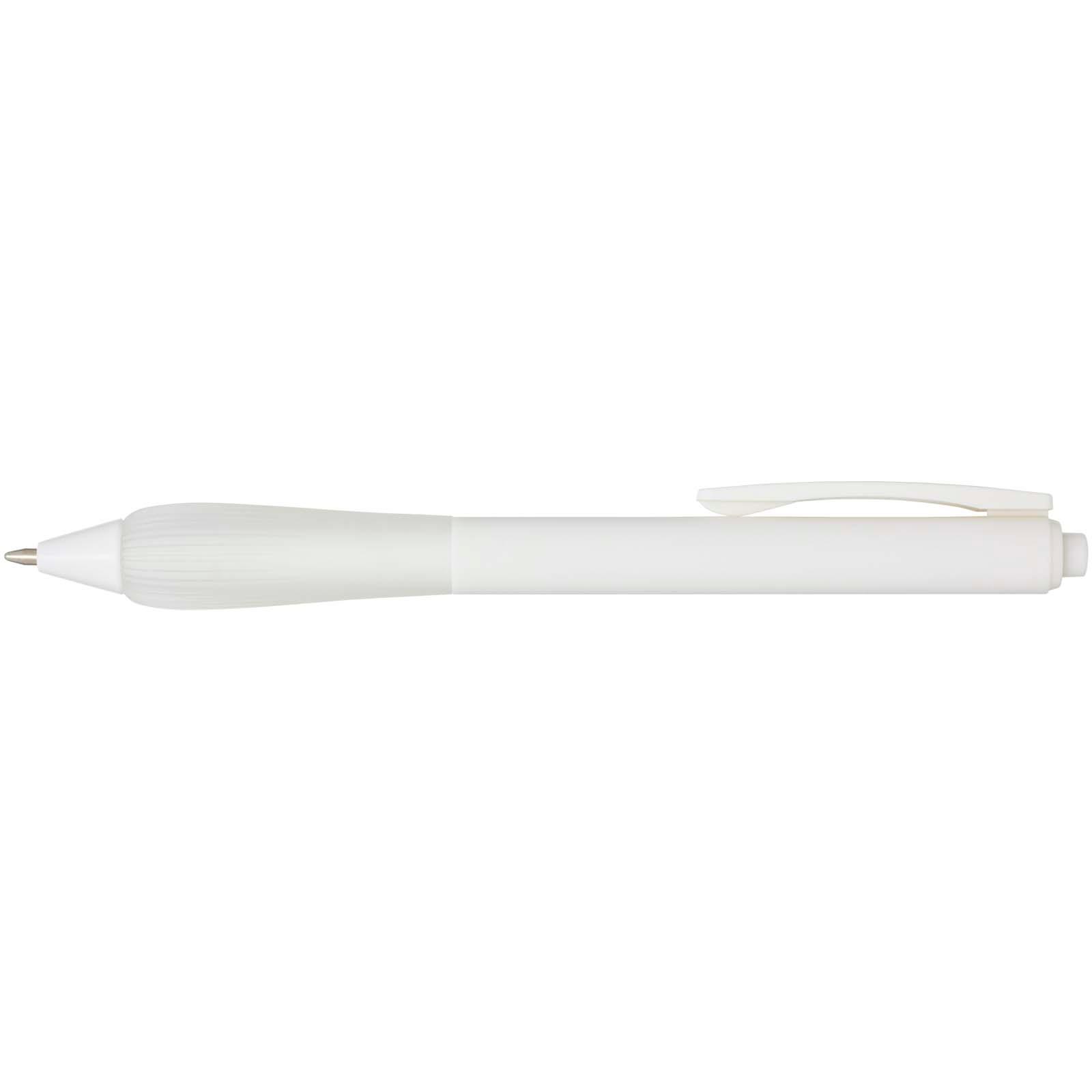 Penna Lorena är en kulspetspenna i återvunnen plast med gummerad pennkropp och bekvämt grepp i TPR. Med svart bläck och en skrivlängd på 1000 meter är den ett hållbart och praktiskt profilval.