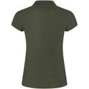 Roly Star Dam är en budgetvänlig piké i 100 % bomull (200 g/m²) med en figursydd passform. Den har en 1x1 ribbstickad krage och muddar, förstärkta dolda sömmar och en smal knappslå med tre knappar.