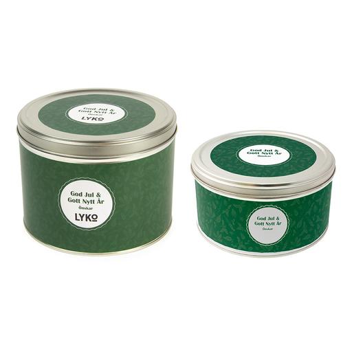 Klassisk plåtburk fylld med pepparkakor – en uppskattad julgåva till kunder och anställda. Välj storlek 500 g eller 800 g. Perfekt som profilprodukt till julens utdelningar och kontorets fikahörna.